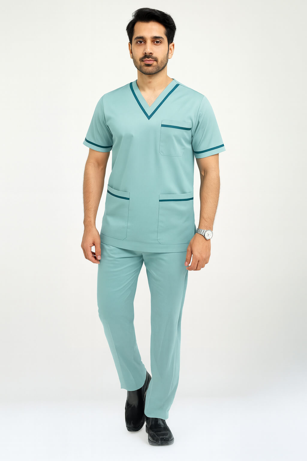 Men’s Brink medical scrubs in Aqua Mist. Lightweight, breathable and made for long shifts. Pick your size and fabric.