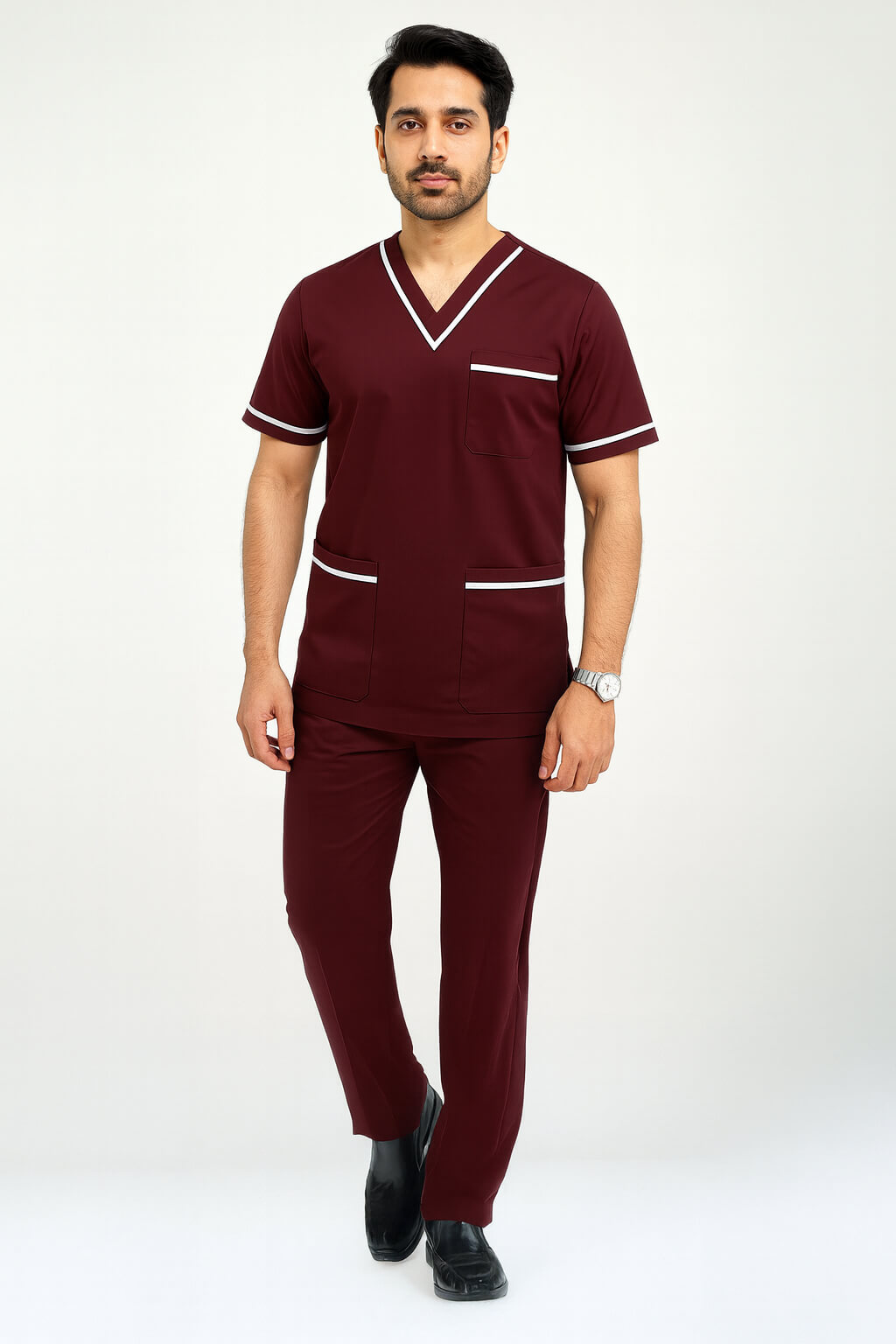 Men’s Brink medical scrubs in Dark Red. Lightweight, breathable and made for long shifts. Pick your size and fabric.