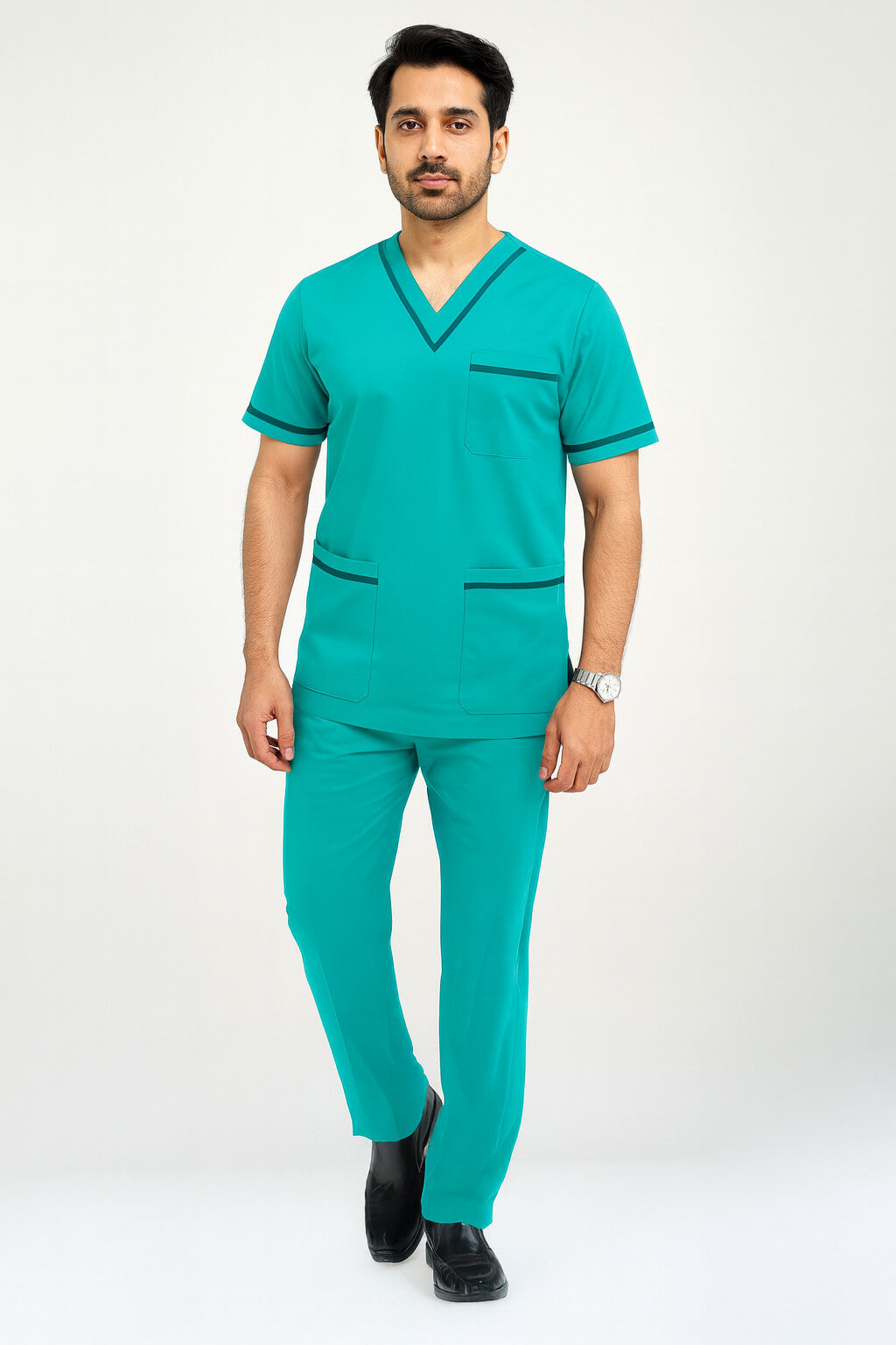 Men’s Brink medical scrubs in Medium Cyan. Lightweight, breathable and made for long shifts. Pick your size and fabric.