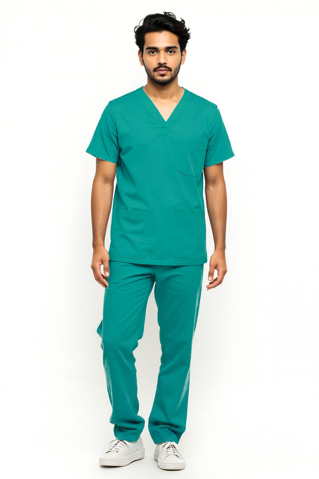Men’s Prime Sprinter medical scrubs in Medium Cyan. Lightweight, breathable, and built for long shifts. Choose your size and fabric.