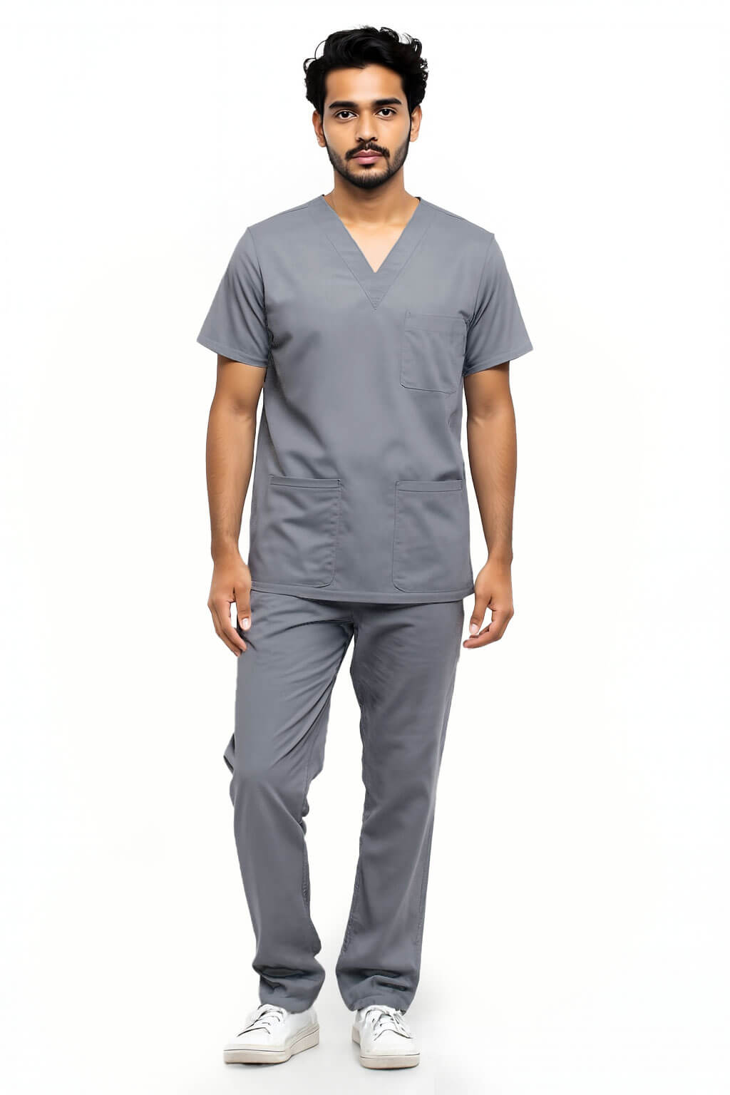 Men’s Prime Sprinter medical scrubs in Medium Grey. Lightweight, breathable, and built for long shifts. Choose your size and fabric.